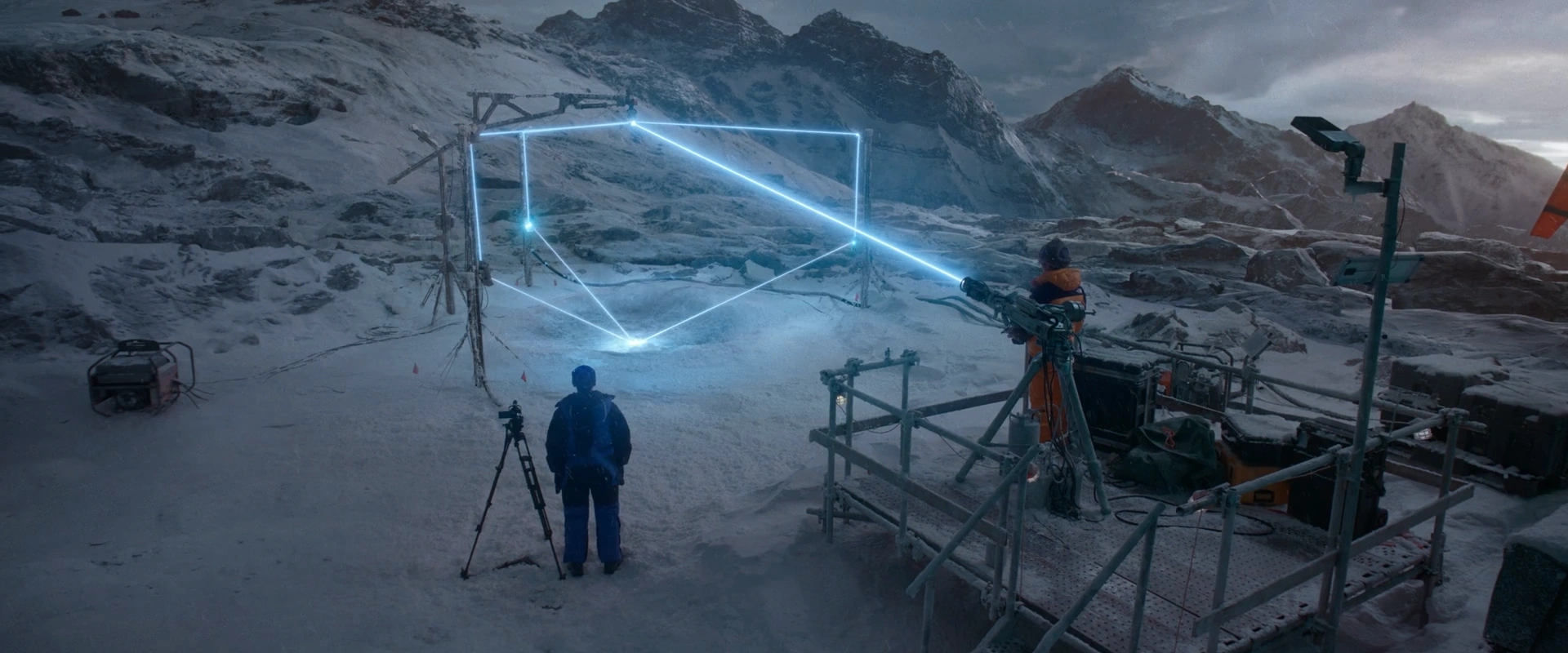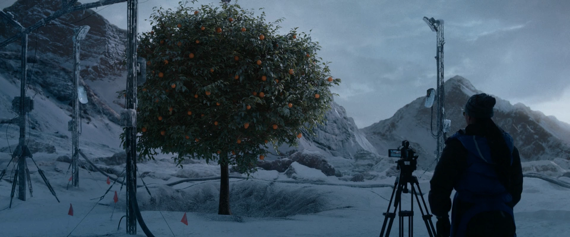 We were responsible for a number of 2.5D matte paintings and sky replacements for these snowy mountain shots. The shots depicted here were a collaboration between multiple artists.